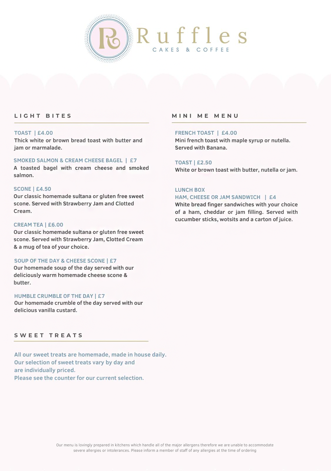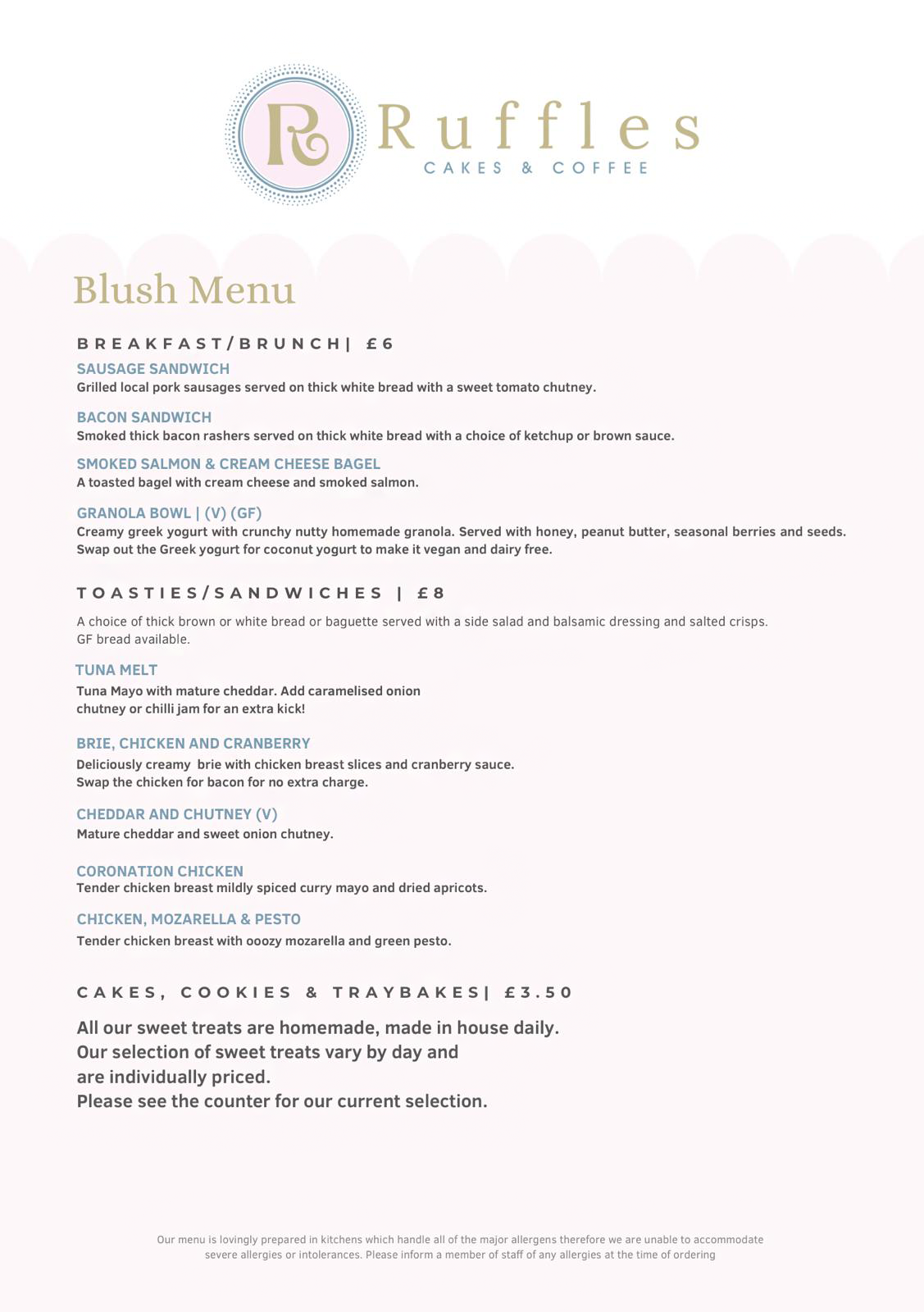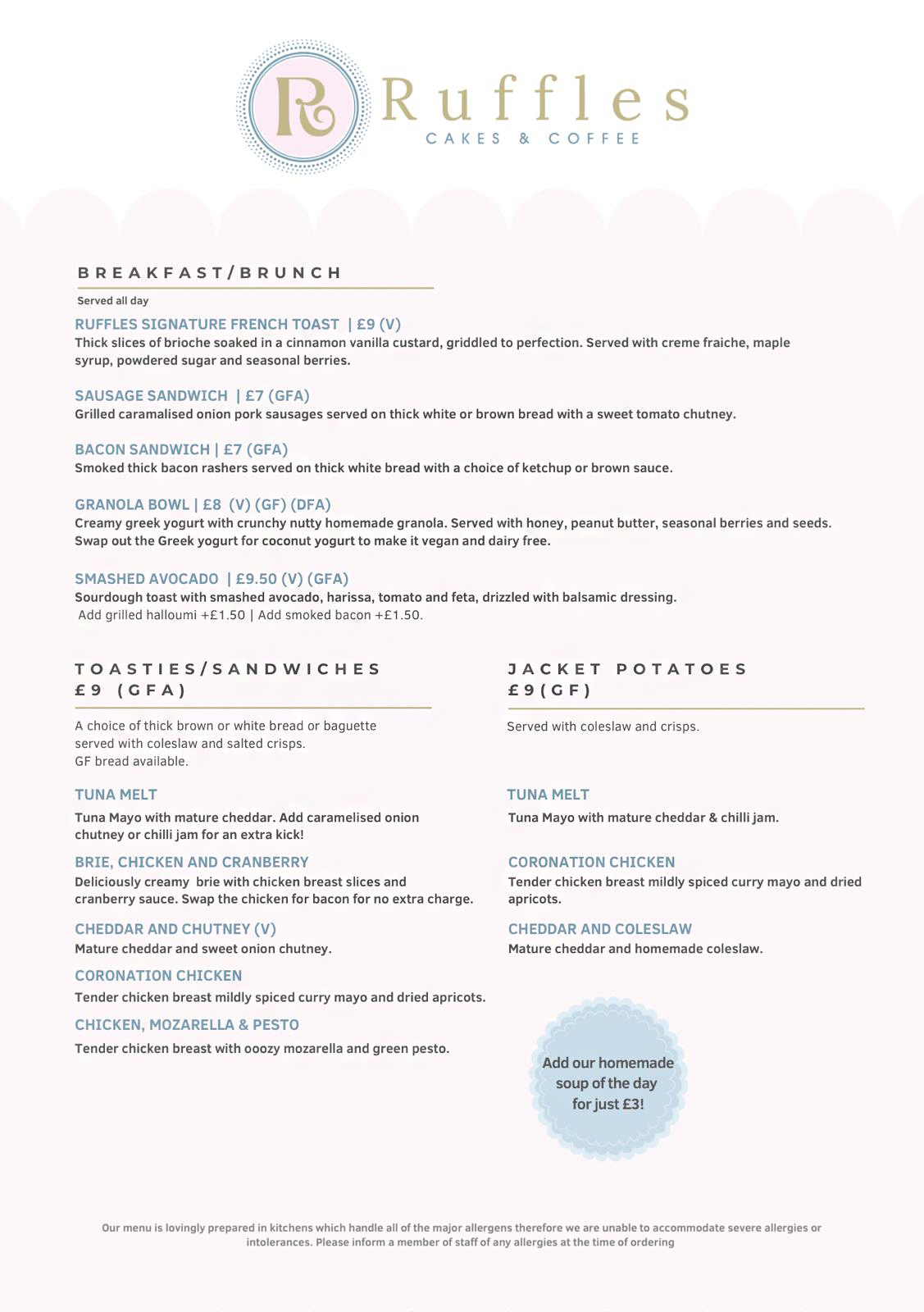 Go classic with a sausage or bacon sandwich, keep it light with a granola bowl, or enjoy a Ruffles favourite: smashed avocado on sourdough.