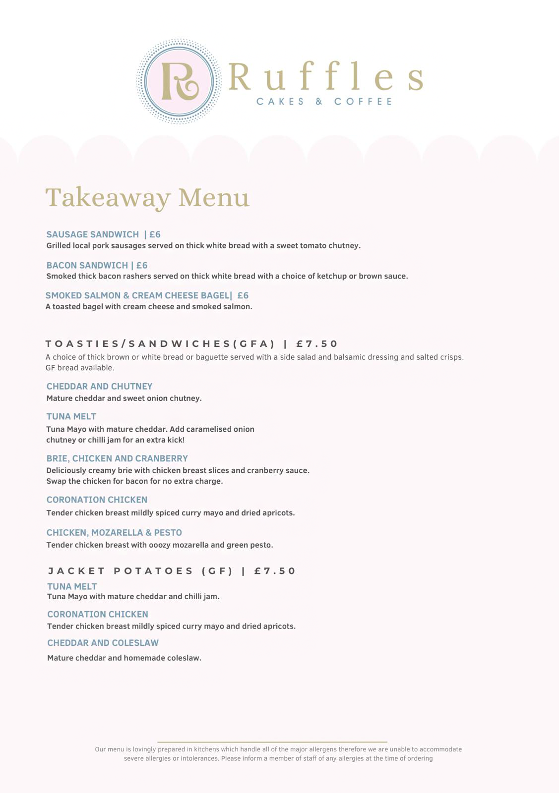 From our freshly made toasties and sandwiches to comforting jacket potatoes, our lunch menu has something to suit every taste.